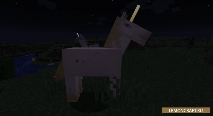 Мод на фантастических мобов Fantasy Mounts добавит в игру волшебных верховых мобов. В игру будет добавлен единорог, который сможет перевозить сразу двух игроков. Призвать его вы сможете с помощью свистка, а во время передвижения по воде, он будет ее замораживать.
